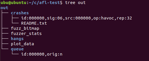 fuzzing终止后,我们就会在当前目录下得到一个out文件夹:
